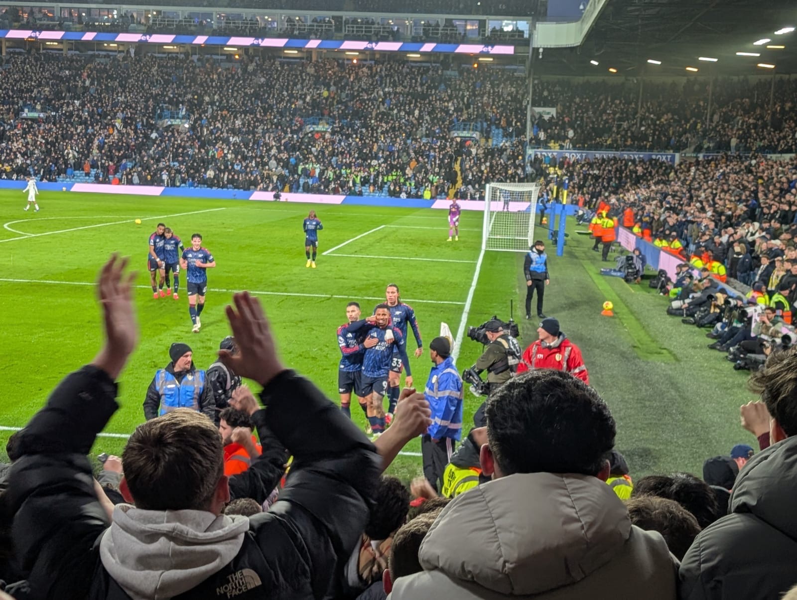 Leeds’ fans were as vociferous as they usually are and therefore the opening 20 minutes was all about Arsenal strangling the life out of the home team and fans. The Gunners in blue had to match the physicality of the home team whilst gradually building up control and exerting pressure through set pieces. Leeds had a record in this area of almost Arsenalist levels but when the Gunners began to turn the screw the home team began to wilt.